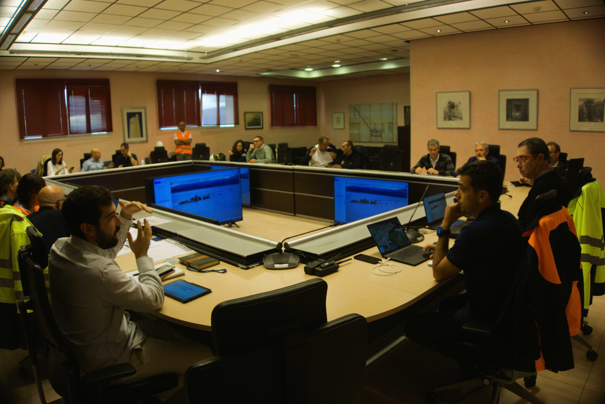 Para el simulacro se activó, el Centro de Coordinación Operativa (CECOP) y el Puesto de Mando Avanzado (PMA); el primero actuó en tierra y el segundo en mar. Esto permitió la participación de varias instituciones además de los organizadores; la Capitanía Marítima, Prácticos del Puerto, Amarradores, SPC personal de la BASE, el remolcador SAR GAVIA, SALVAMAR DENEP 061, Protección Civil del Gobierno de Cantabria, Dynasol Group y Hermanos Tricio.